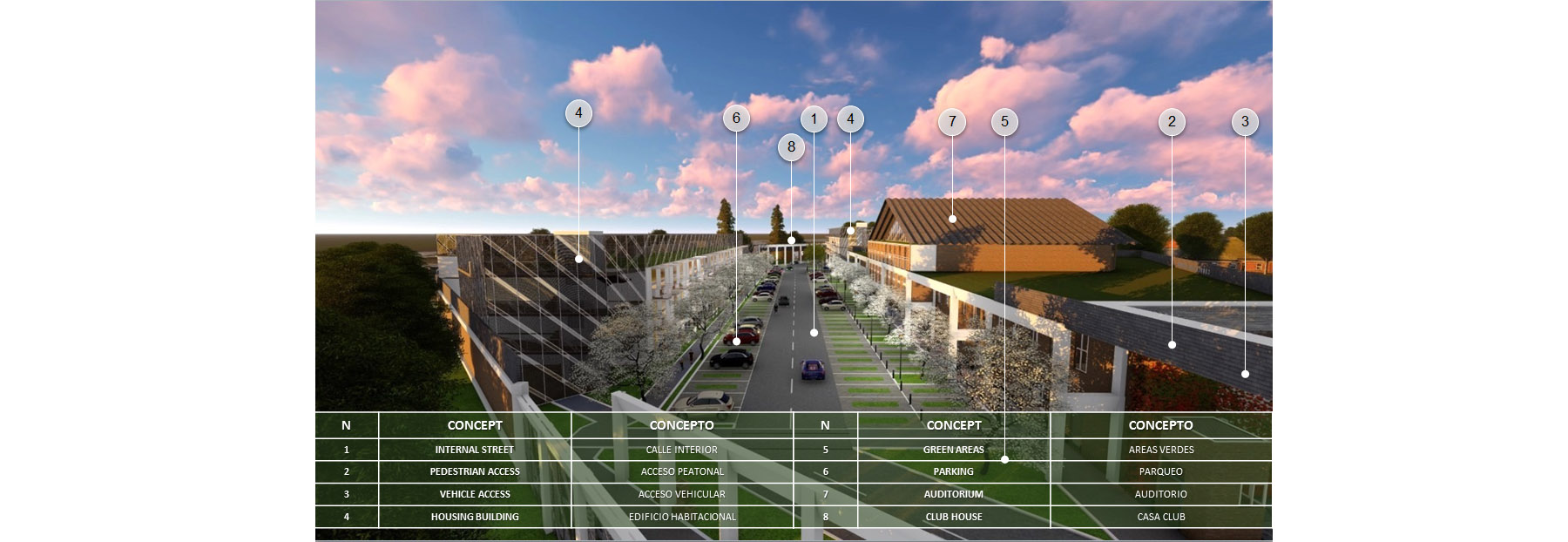 Descripción GeneralNJ GREEN HOUSES II, es un proyecto para un conjunto de usos mixtos con edificios de vivienda, recreación, comercio y servicios educativos y de cuidado infantil; tiene como propósito crear una comunidad en torno a las actividades diarias de sus habitantes. La propiedad cuenta con el edificio antiguo “Citizen League” del cual se pretende rescatar y restaurar la fachada principal dándole identidad y carácter al conjunto; e integrándose así con el diseño de volúmenes modernos, que en integrados dan lugar al edifico I. Los edificios II y III, se han diseñado con 66 apartamentos de 2 y 3 recámaras, incluyen 180 parqueos, zonas peatonales, jardines contemplativos y diferentes áreas de recreación para sus habitantes. Los techos aterrazados aportan dinamismo y frescura al diseño, a la vista integral del conjunto. NJ GREEN HOUSES II esta configurado por 3 edificios que contienen las funciones descritas.