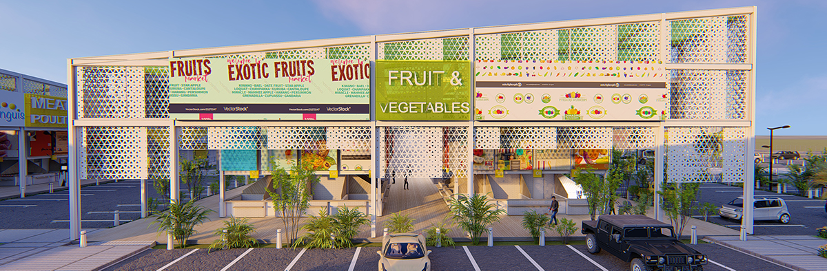 Building B houses 48 commercial stores dedicated to the sale of flowers and vegetables. Additionally it has 56 warehouse, two bathrooms and nearby parking for the proper functioning of the building. It has an architecture that through its envelope allows the interaction between the exterior and the interior, generating a sense of continuity and breadth in space. |