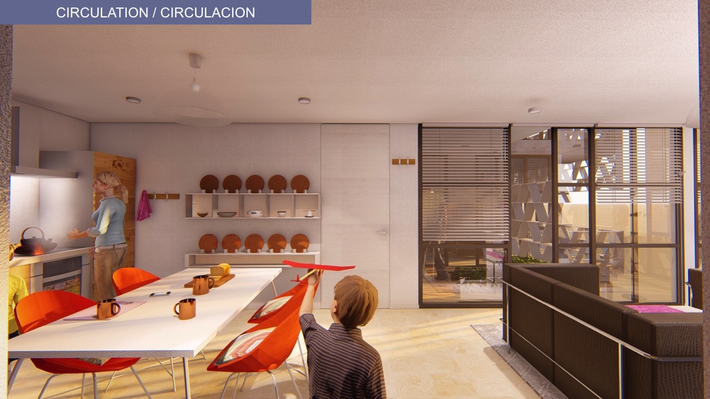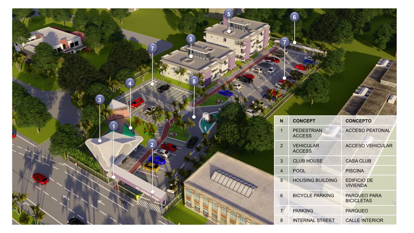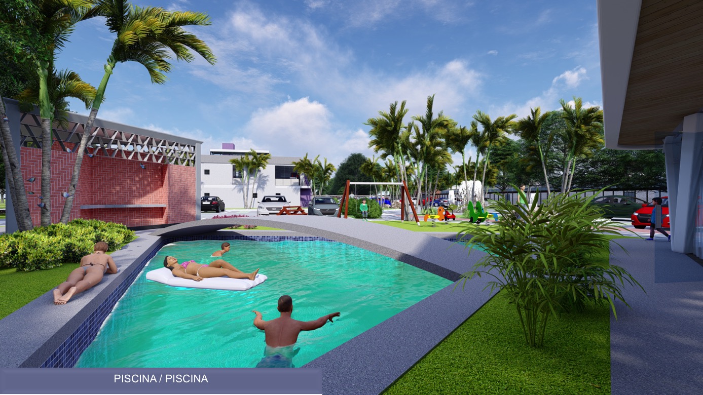 Conjunto de vivienda para 20 familias con Casa Club y piscina.