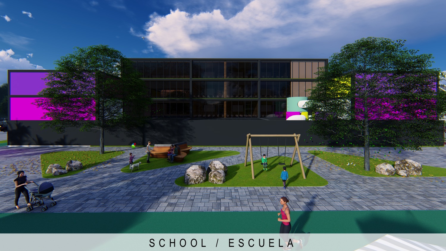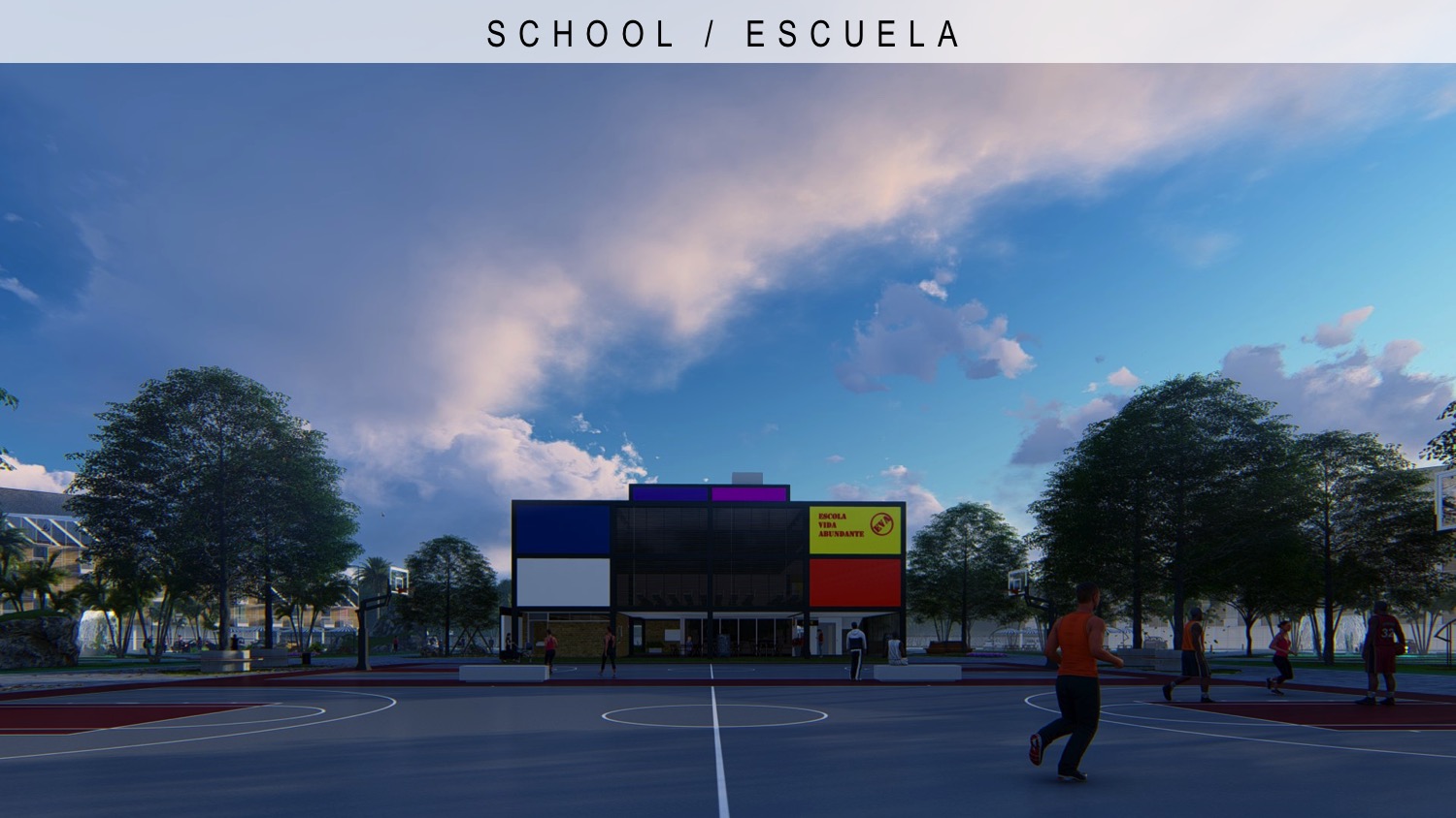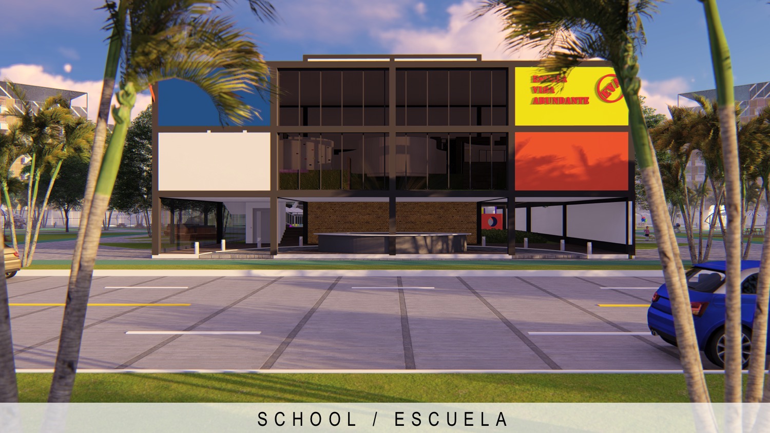 288 apartments residential complex, school and park | Conjunto residencial de 288 apartamentos, escuela y parque