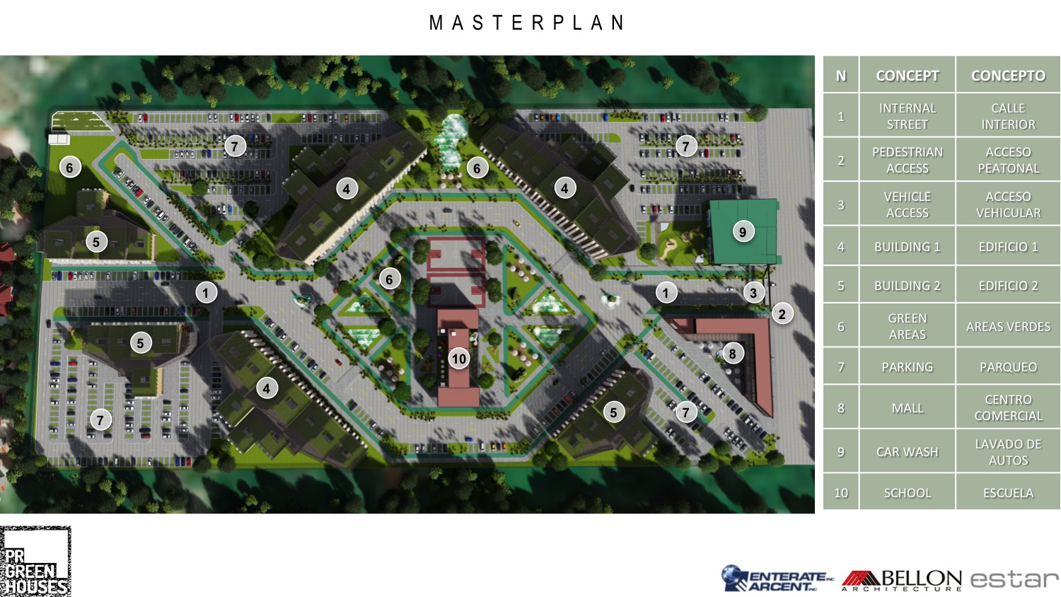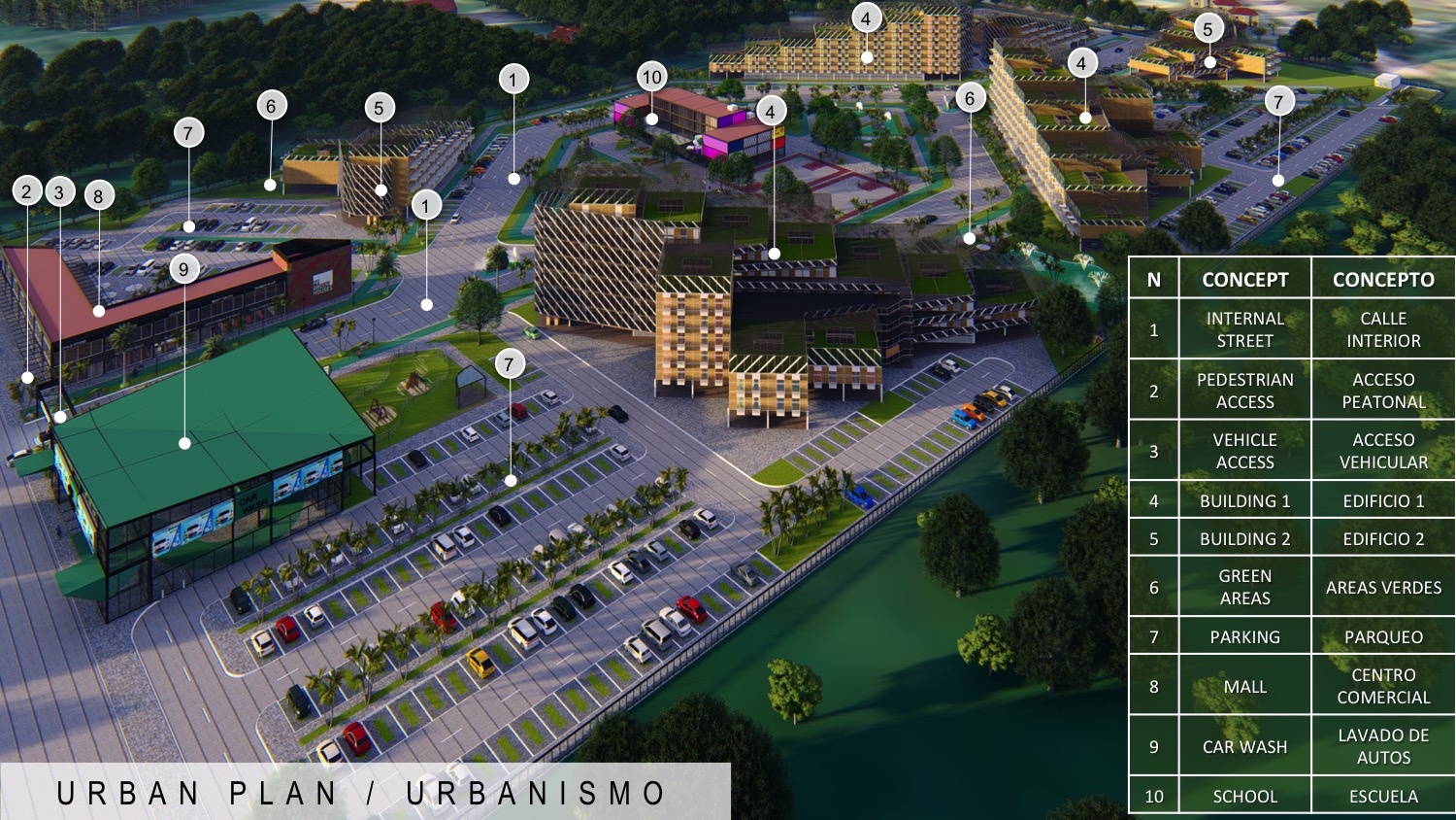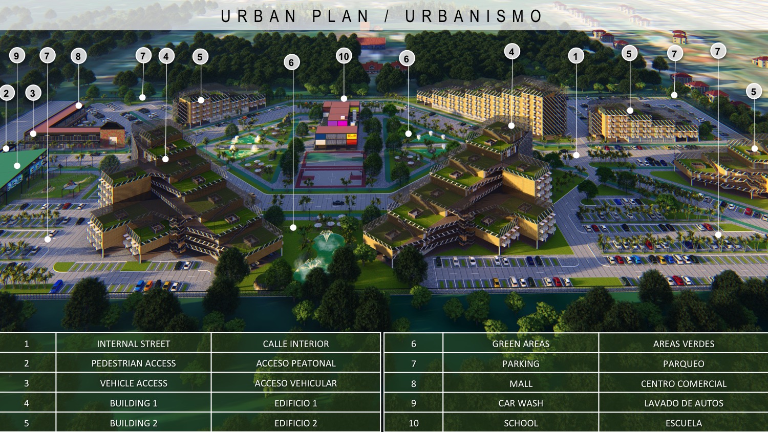288 apartments residential complex, school and park | Conjunto residencial de 288 apartamentos, escuela y parque