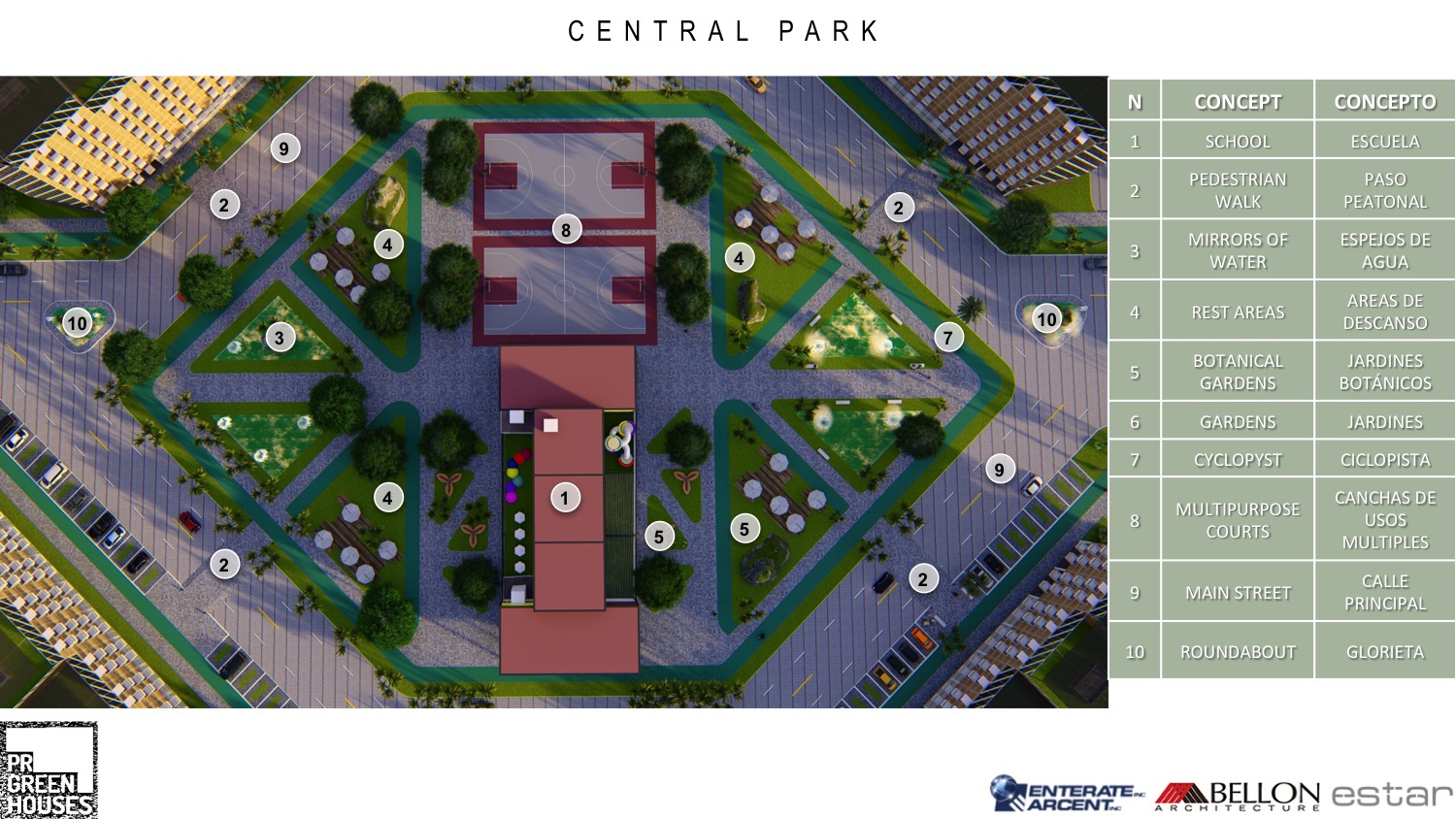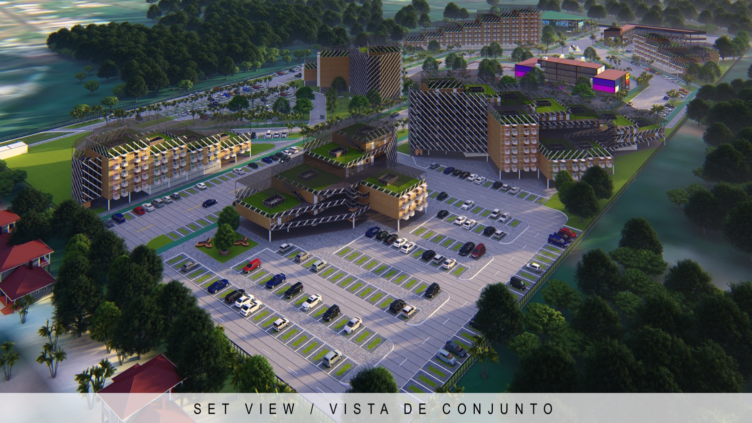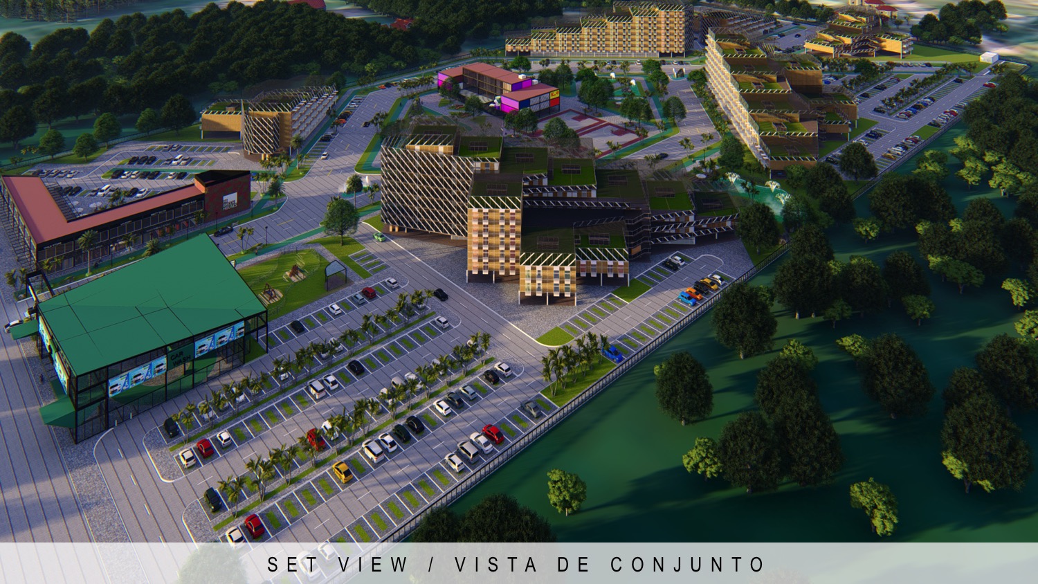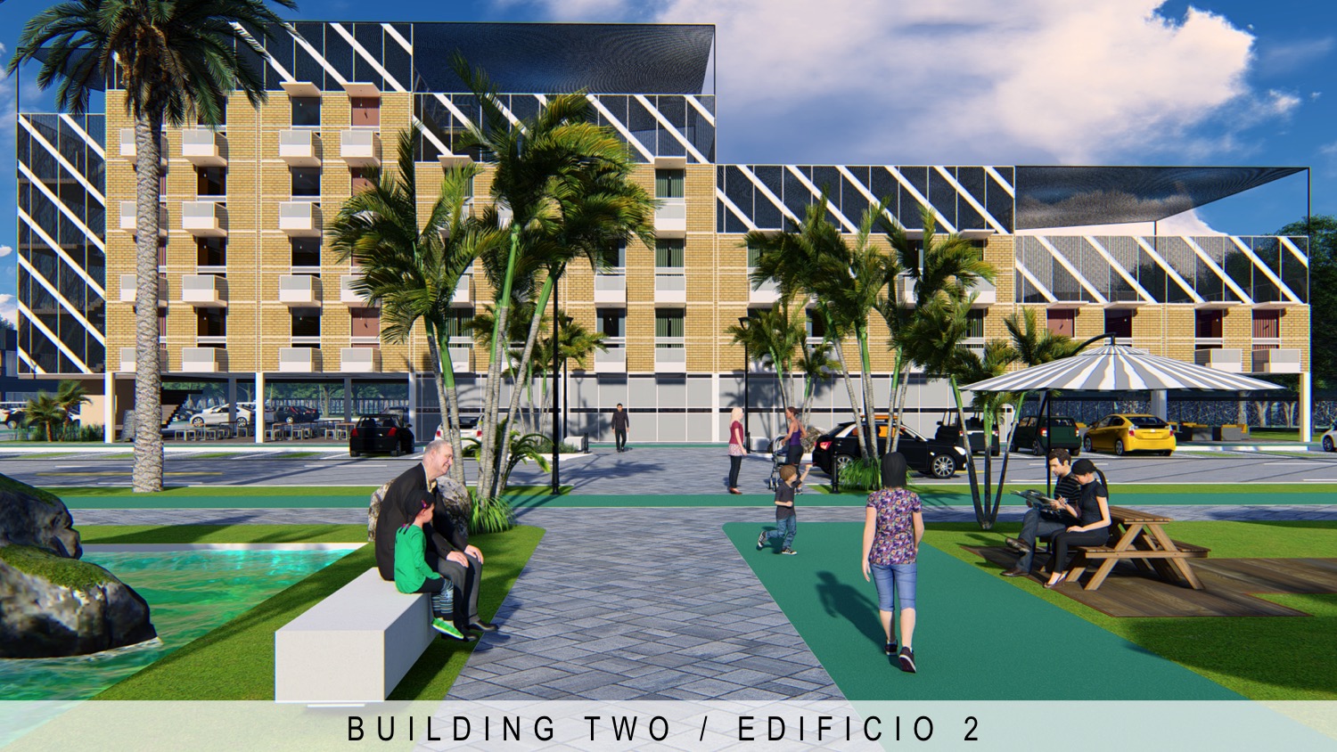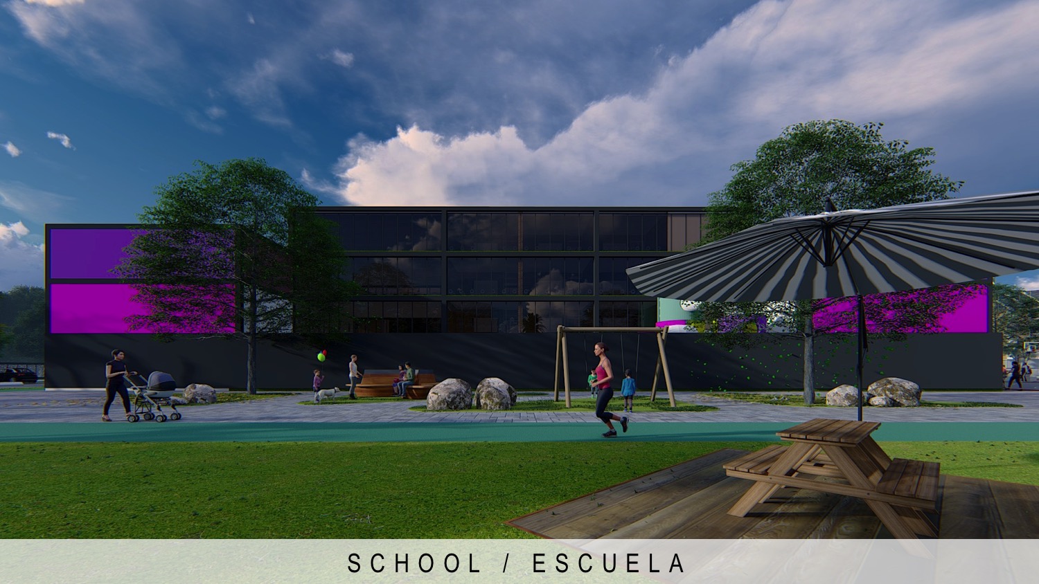 288 apartments residential complex, school and park | Conjunto residencial de 288 apartamentos, escuela y parque