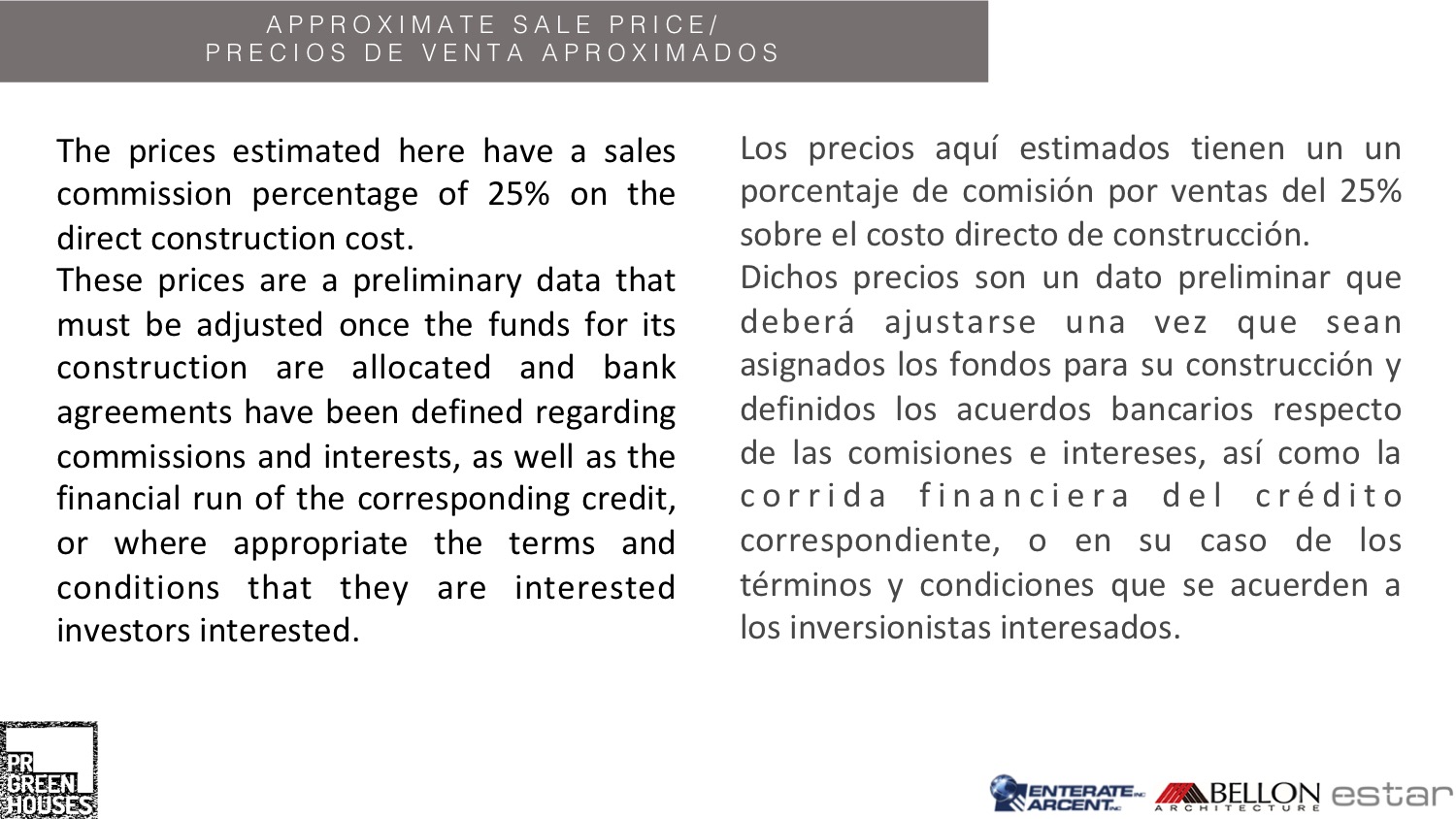 Todos los proyectos de construcción aqui presentados estan sujetos a la aprobación de las ciudades del Estado de Florida, EEUU; de los ingenieros, arquitectos y compañías de construcción acreditadas en el Estado. Son ejemplos de cómo podrían ser y siguen sujetos a las condiciones mencionadas.